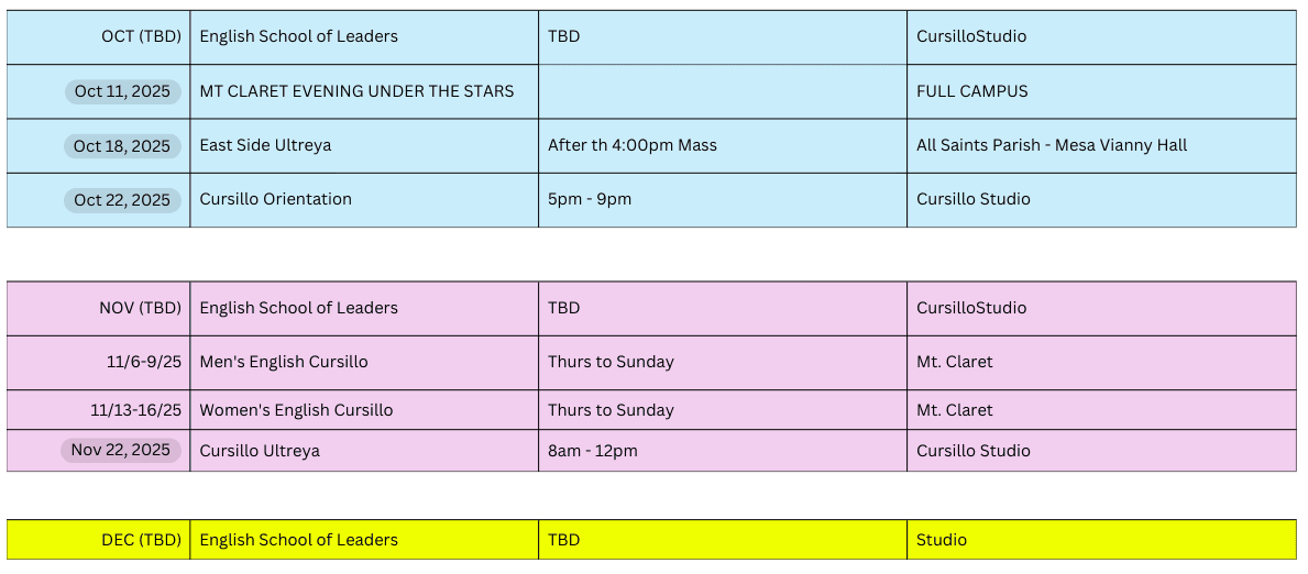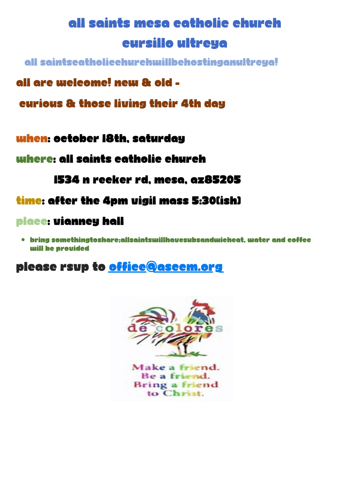 For information on any of the Ultreyas, please contact James Sundust at (480) 798-4743